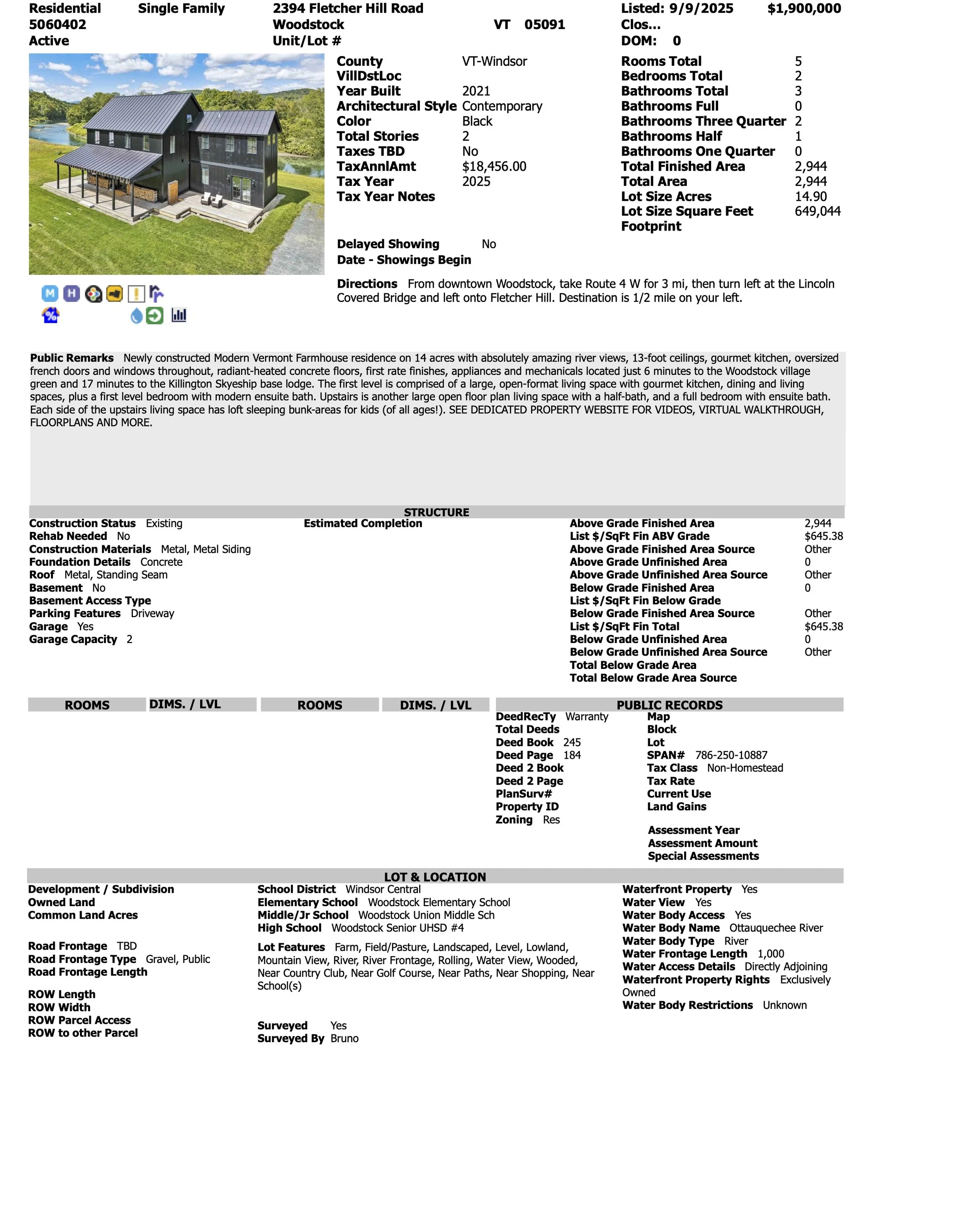 $1,900,000 | 14.9 acres | Modern Vermont Farmhouse | Constructed in 2021